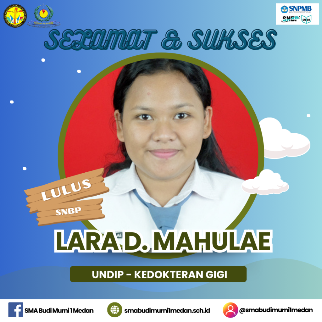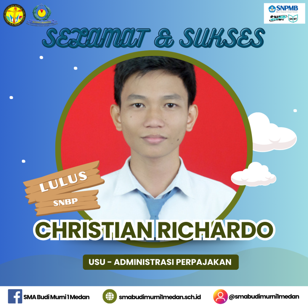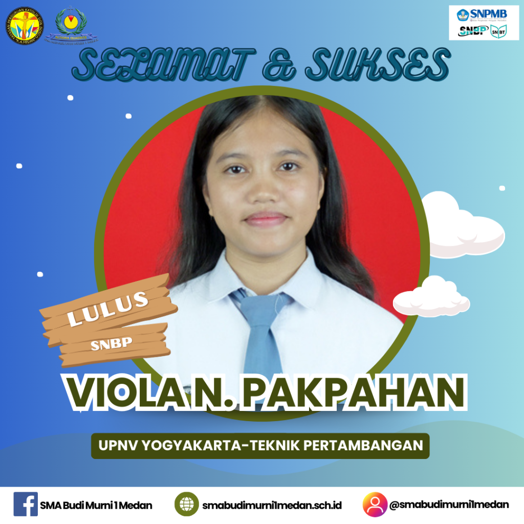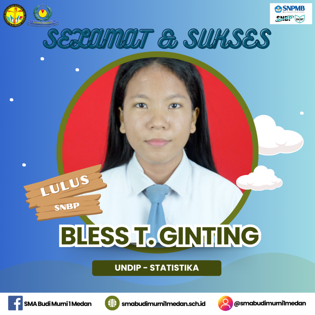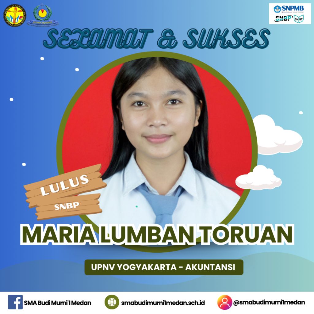 Berikut adalah daftar nama siswa SMAS Katolik Budi Murni 1 Medan yang lulus di Perguruan Tinggi Negeri (PTN) lewat jalur SNBP tahun 2024.